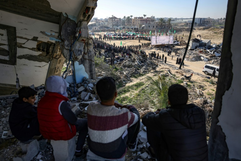 Avant leur remise au Comité international de la Croix-Rouge (CICR), ils ont été exhibés sur un podium, entourés de combattants du Hamas et de son allié du Jihad islamique, et contraints de dire quelques mots en hébreu devant la foule, suivant une mise en scène organisée à chaque libération.
