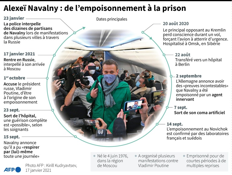 Les autorités rejettent l'ensemble des accusations d'empoisonnement et de corruption, qualifiant l'opposant et son entourage d'"escrocs". Dimanche, Leonid Volkov, un membre de l'équipe de M. Navalny, a déclaré à l'AFP être "certainement fier, très impressionné et inspiré" par les résultats des manifestations organisées la veille. Selon lui, de nouvelles protestations devraient avoir lieu en Russie "le week-end prochain".