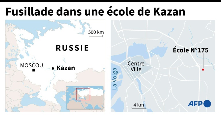 Kazan︱ Une fusillade qui a eu lieu dans une école de #Kazan (Russie), a fait 9 morts (8 enfants et 1 enseignant). #AFP #Russia pic.twitter.com/P3ucCs0bBq
