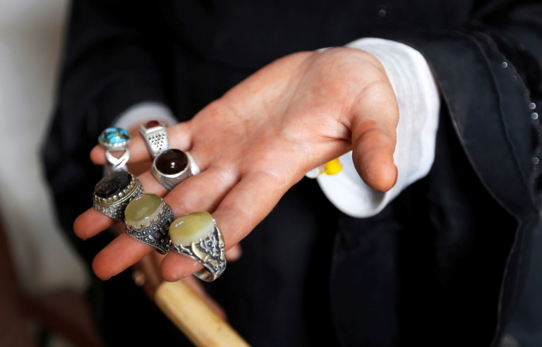 Tennis vertes et niqab noir, cette jeune artisane est l'une des rares Yéménites à exercer ce métier. Elle passe une agate bleue sur une flamme brûlante et la fait tourner lentement, à mains nues, avant de l'introduire dans un moule."Chaque jour, ces pierres me racontent une histoire différente", explique Safaa al-Faqih à l'AFP dans la capitale Sanaa. "J'apprends" et "je découvre quelque chose de nouveau chaque jour".