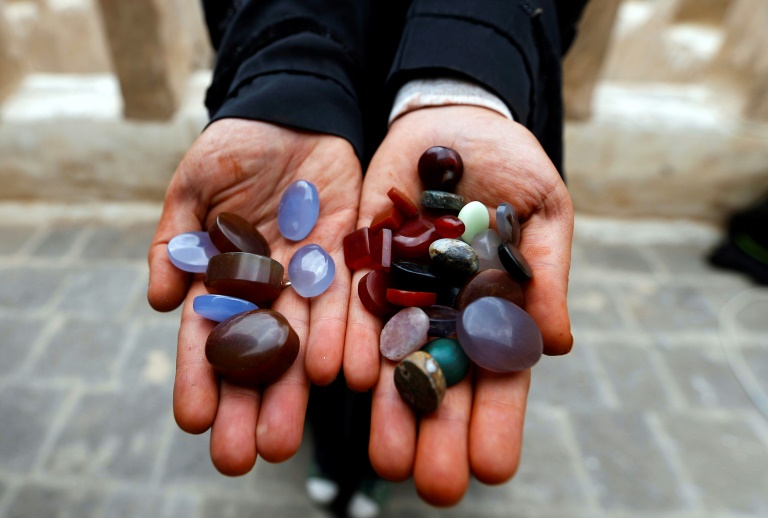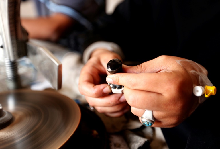 Ses doigts saignent sous ses ongles mais, assise à son poste de travail, Safaa classe des pierres semi-précieuses sur une roue qui tourne et semble être en paix dans un Yémen pourtant en guerre depuis plus de trois ans.