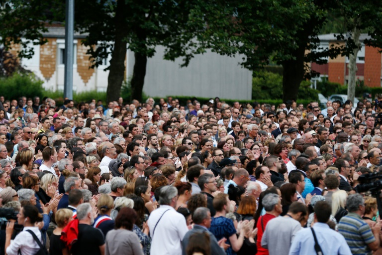 Plusieurs milliers de personnes ont rendu un hommage solennel jeudi soir au père Jacques Hamel, dans la commune normande de Saint-Étienne-du-Rouvray, où le prêtre de 86 ans a été assassiné deux jours plus tôt par un commando jihadiste.
