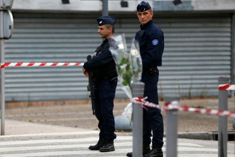"Je vais à la messe et je n'y étais pas ce jour-là. Ca m'a bouleversée, c'est atroce", lâche Nicole, 65 ans, tandis que, juste devant le cordon jaune et rouge qui interdit l'accès à l'église, un fleuriste dépose une gerbe au nom des Associations musulmanes de France.