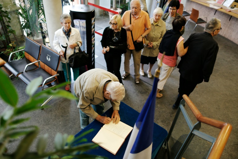 A l'intérieur du bâtiment, on fait la queue pour signer le registre de condoléances. Dans les rues au silence pesant malgré la présence des forces de l'ordre et de très nombreux journalistes du monde entier, les anciens font leurs courses, les commerces ayant rouvert après avoir été contraints de fermer leurs portes la veille.