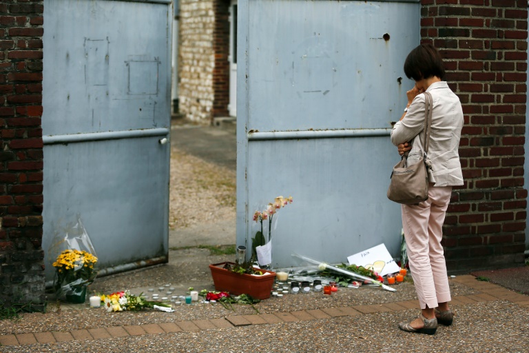 "Repose en paix Jacques Hamel, que les portes du paradis te soient ouvertes", peut-on lire sur un message laissé au milieu de bougies encore allumées et de bouquets de fleurs à même le sol.