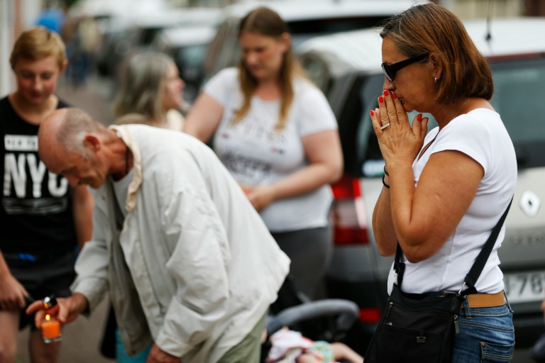 Une marche blanche est prévue jeudi après-midi au départ de l'Hôtel de ville. Sans attendre, les habitants se rassemblent devant un autre lieu symbolique : la porte de la maison du prêtre assassiné.