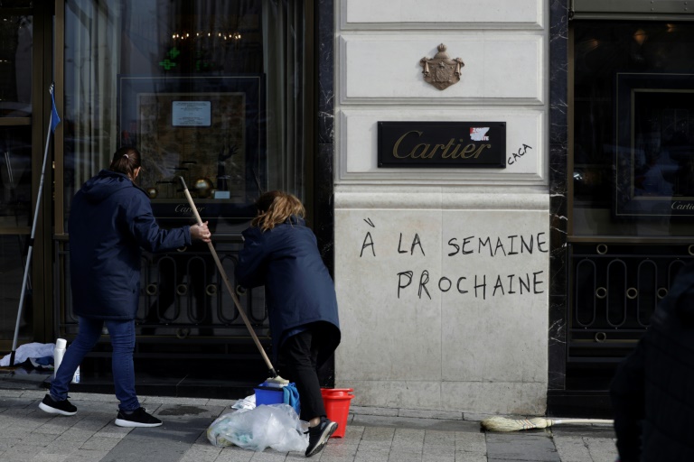 Dimanche matin, l'avenue très touristique portait encore les stigmates des attaques de la veille : 80 enseignes ont été touchées, dont une vingtaine pillées ou victimes de départs d'incendie, a précisé à l'AFP une association de commerçants qui demande à être reçue par le Premier ministre.
