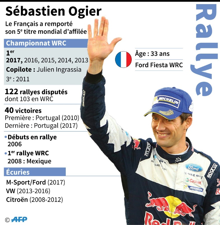 Deuxième pilote le plus titré en Championnat du monde des rallyes et surtout deuxième Français le plus récompensé de l'histoire du sport automobile derrière Sébastien Loeb, Sébastien Ogier, sacré pour la cinquième fois dimanche, va-t-il enfin sortir de l'ombre de son prédécesseur?