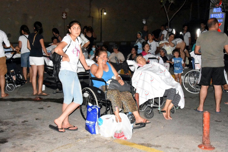 La plupart des personnes admises à l'hôpital de Bodrum ont été blessées en sautant des bâtiments dans lesquels ils se trouvaient quand le séisme a frappé ou à la suite de chutes provoquées par la secousse, selon la chaîne NTV. Ils ont reçu des soins dans le jardin de l'hôpital car le plafond de l'établissement a subi des dégâts lors du séisme et les autorités n'ont pas voulu prendre le risque d'admettre les blessés à l'intérieur, a indiqué le gouverneur de Bodrum Bekir Yilmaz, cité par le quotidien Hurriyet.