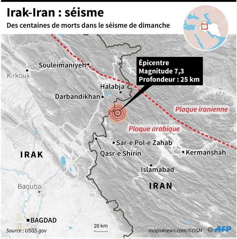 Violent séisme aux confins de l'Iran et de l'Irak : le bilan passe à au moins 213 morts.