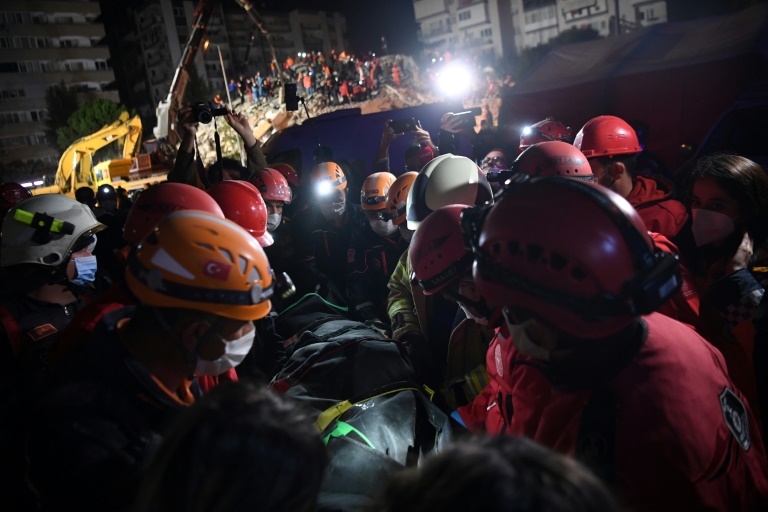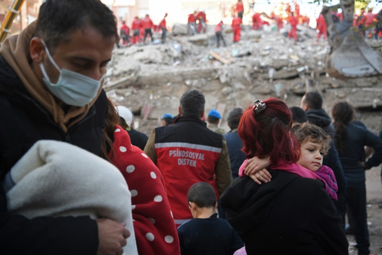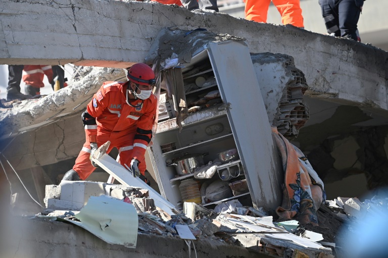 Eclairés par des projecteurs et dans le vacarme des pelleteuses, des équipes de sauveteurs déblayaient un amas de béton et de poutres à Bayrakli, dans la région d'Izmir, sous le regard inquiet des habitants, selon une correspondante de l'AFP. Le désespoir commençait à s'emparer de certains d'entre eux: après avoir aidé à sortir des décombres les corps sans vie de trois membres d'une même famille, dont un bébé, un jeune secouriste s'est laissé tomber sur un bloc de béton, ne pouvant retenir ses larmes, d'après des images publiées par les médias.