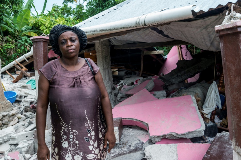 Avec seulement un bonnet de douche pour se protéger des gouttes, Magalie Cadet est épuisée par les trois jours d'épreuves qu'elle vient de subir. "Même pour faire nos besoins, on n'a aucun endroit, donc on doit chercher dans les rues pour se soulager", déplore cette femme de 41 ans, les nerfs usés par les incessantes répliques du tremblement de terre. "Hier soir, je m'étais mise à l'abri près de l'église mais quand on a senti la terre trembler à nouveau, j'ai couru pour retourner ici", soupire-t-elle.