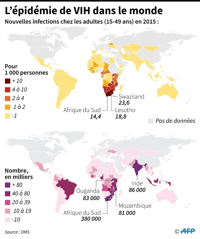 L'an dernier, 36,7 millions de personnes vivaient avec le VIH et plus de la moitié (19,5) avaient accès aux traitements. En 2016, 19,1 milliards de dollars ont été réunis par des donateurs publics et privés dans le monde pour la lutte contre le sida.