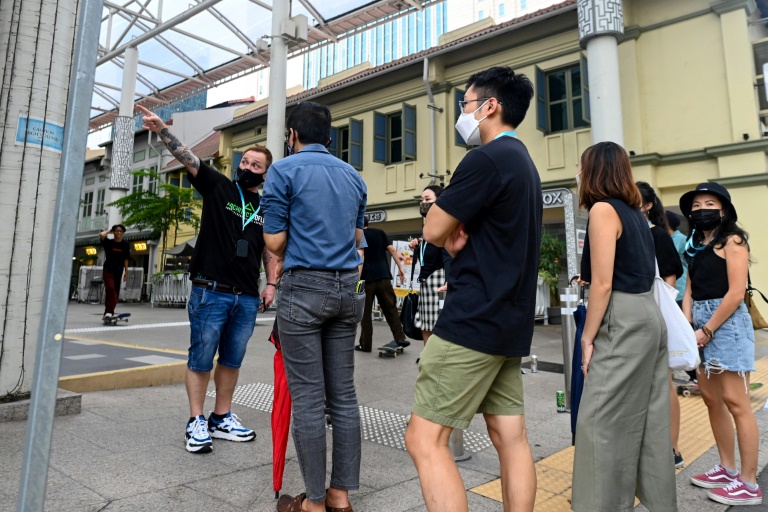 "Le siĂšge du plus gros gang de Singapour Ă©tait ici", explique Bruce Mathieu, le guide, dans une rue tranquille bordĂ©e de bĂątiments de l'Ă©poque coloniale, oĂč s'alignent des restaurants et un salon de coiffure. Il se souvient s'ĂȘtre promenĂ© dans ce quartier quand il Ă©tait enfant dans les annĂ©es 1970 parmi les vendeurs de nourriture de rue, les salles de jeu et l'odeur caractĂ©ristique de l'opium qui imprĂ©gnait la rue depuis les fumeries des Ă©tages supĂ©rieurs.