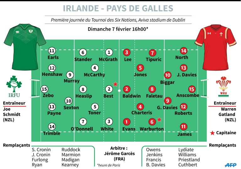 L'Irlande, double tenante du titre dans le Tournoi, est dans l'expectative après avoir été contrainte de rebattre les cartes dans son équipe pour la réception dimanche (16h00) d'un pays de Galles bien plus rodé.