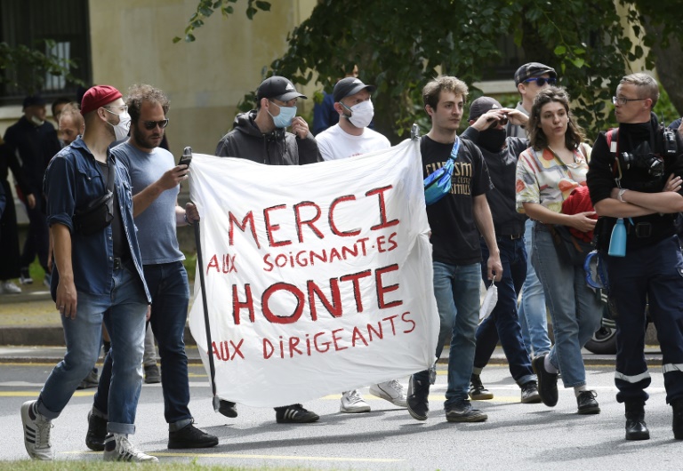 "Finis les applaudissements, place aux rassemblements": aprÚs trois mois de crise sanitaire, médecins, aides-soignants et infirmiers ont battu le pavé par dizaines de milliers mardi un peu partout en France pour rappeler le gouvernement à ses promesses sur l'hÎpital, mais des affrontements ont terni plusieurs manifestations.