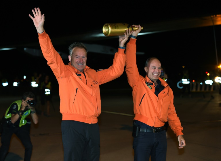 L'avion ne pouvant transporter qu'un seul pilote, Bertrand Piccard, âgé de 58 ans, et son compatriote André Borschberg, 63 ans, se relaient à chaque étape pour accomplir à tour de rôle les longs vols en solitaire.