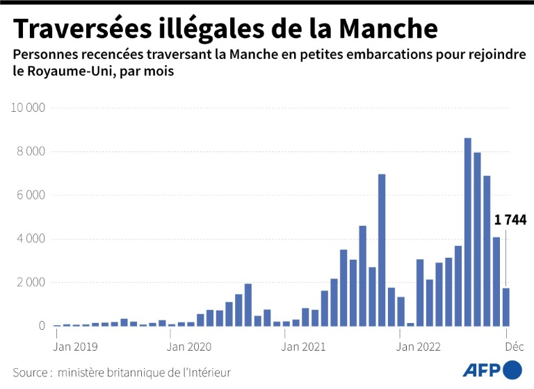 Dans l'entourage du dirigeant conservateur britannique, on juge "crucial" de travailler "avec les Français pour empêcher les traversées et les pertes de vies humaines dans la Manche", alors que plus de 45.000 migrants ont rejoint illégalement les côtes anglaises en 2022 sur des embarcations de fortune, un record malgré la multiplication des plans pour lutter contre ce phénomène.