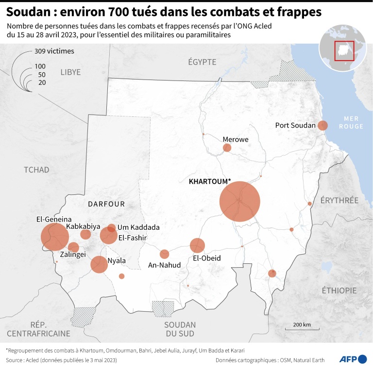 Dans la ville côtière de Port-Soudan, épargnée par les violences, l'ONU et de plus en plus d'ONG tentent de négocier l'acheminement de cargaisons d'aide vers Khartoum et le Darfour où hôpitaux et stocks humanitaires ont été pillés et bombardés.