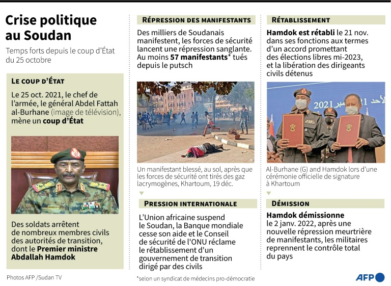 Le 21 novembre, le général Burhane avait réintégré Abdallah Hamdok dans un accord promettant des élections mi-2023, mais le mouvement de protestation a qualifié cette entente de "trahison" et poursuivi ses protestations.