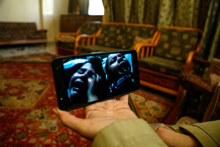 "Ils entrent dans un état d'hystérie quand les bombardements approchent. Dans les sous-sols, les enfants crient mais les parents aussi", raconte la quadragénaire, portant un long manteau beige et un strict voile noir.