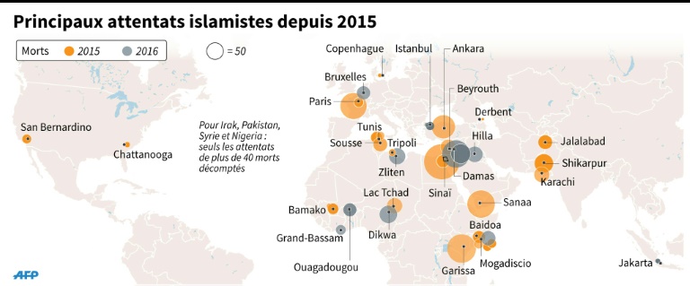 Mais l'Europe est loin d'être la seule cible des jihadistes qui ont également lourdement frappé des pays du monde arabe.
