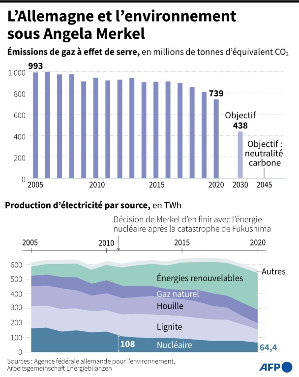 Malgré l'importance des questions climatiques dans la campagne, et le traumatisme du pays touché par des crues meurtrières en juillet, la cause écologiste n'a pas progressé autant que l'espéraient les "Grünen", un temps donnés en lice pour décrocher la chancellerie.