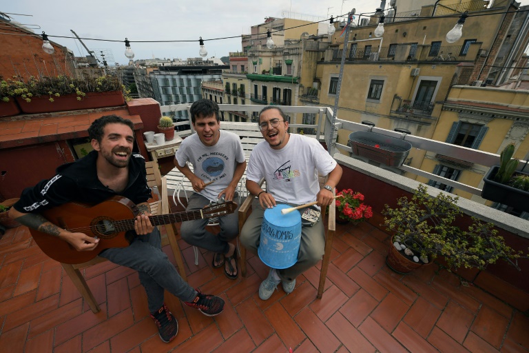 Sur leur terrasse à Barcelone, Klaus, Rai et Guillem voulaient juste égayer le confinement des Espagnols avec une guitare et un seau en guise de batterie. Mais ce trio décontracté a rencontré un succès qui lui semble encore "invraisemblable".