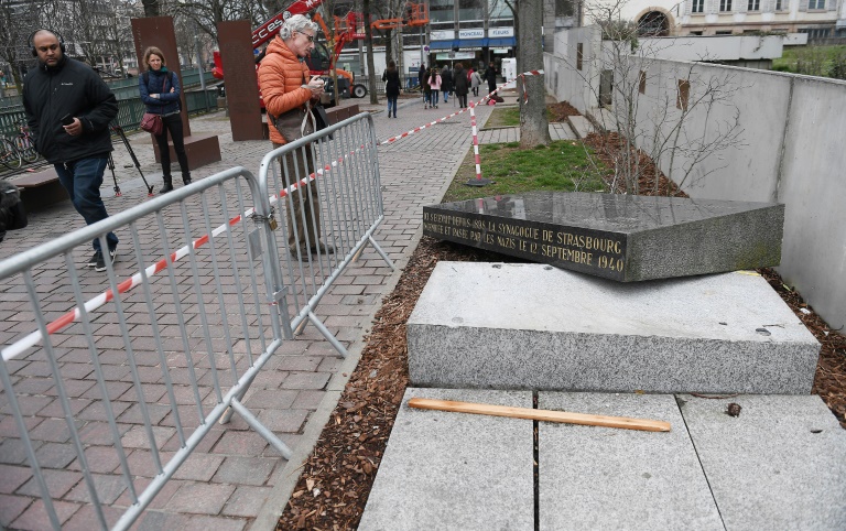 Deux semaines après la profanation du cimetière juif de Quatzenheim (Bas-Rhin), la stèle marquant l'emplacement de l'ancienne synagogue de Strasbourg, dynamitée par les nazis en 1941, a été vandalisée dans la nuit de vendredi à samedi, un acte qui a suscité une cascade de condamnations.