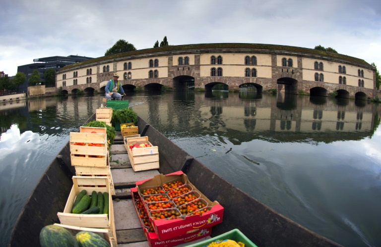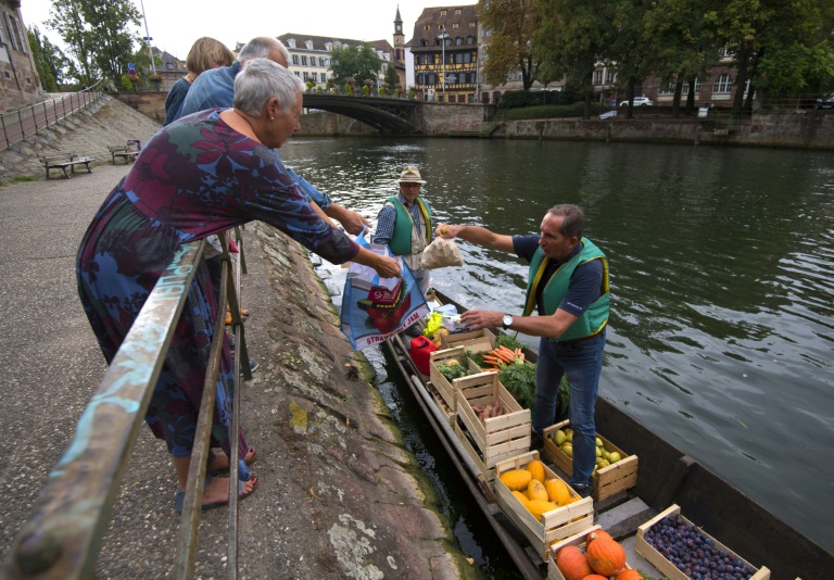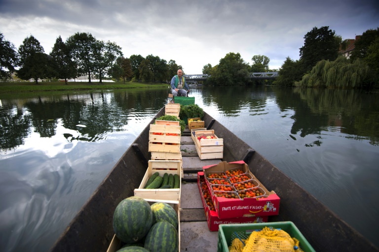 Au petit matin, quand les camions de livraison encombrent les rues piétonnes de la Petite France, quartier historique de la ville surplombant la rivière, Christophe Moegling est le seul à arriver par les eaux. "Du producteur au consommateur, on voulait prendre le chemin le plus court... et le plus pratique", explique le commerçant, qui s'approvisionne à l'îlot de la Meinau, ferme urbaine adossée au cour d'eau, située à moins de cinq kilomètres de l'hypercentre.