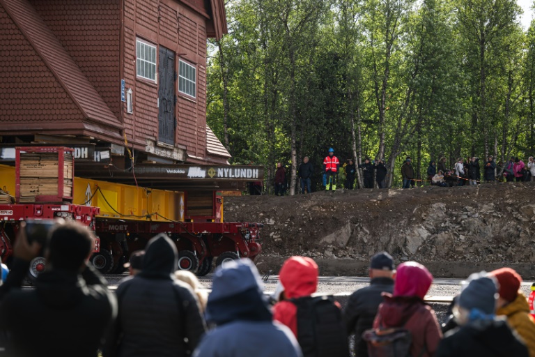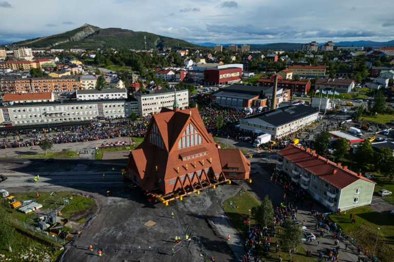 Magnifique église en bois rouge, considérée comme l'un des plus beaux bâtiments de Suède, l'église de Kiruna a repris mercredi son lent déplacement dans le cadre du déménagement de la ville arctique causé par l'expansion de sa mine, la plus grande d'Europe.