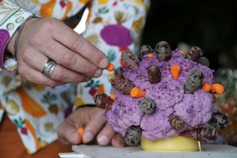 Quel est le point commun entre un navet piqué d'allumettes et un kiwano orné de sucettes et d'épingles? Les deux créations sortent de l'esprit déjanté d'un Londonien confiné qui crée des repliques du nouveau coronavirus à partir d'objets du quotidien.