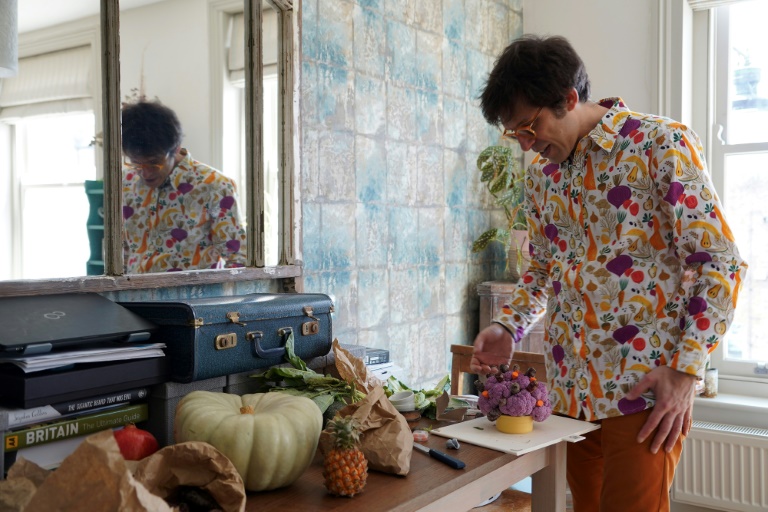 Chaque jour, depuis son appartement du nord de Londres, cet employé d'un cabinet de conseil en investissement, à la chemise aussi bariolée que ses créations, consacre quatre heures à ses oeuvres, toujours plus inventives, avant de les poster sur un compte Instagram dédié, covid19replicas.