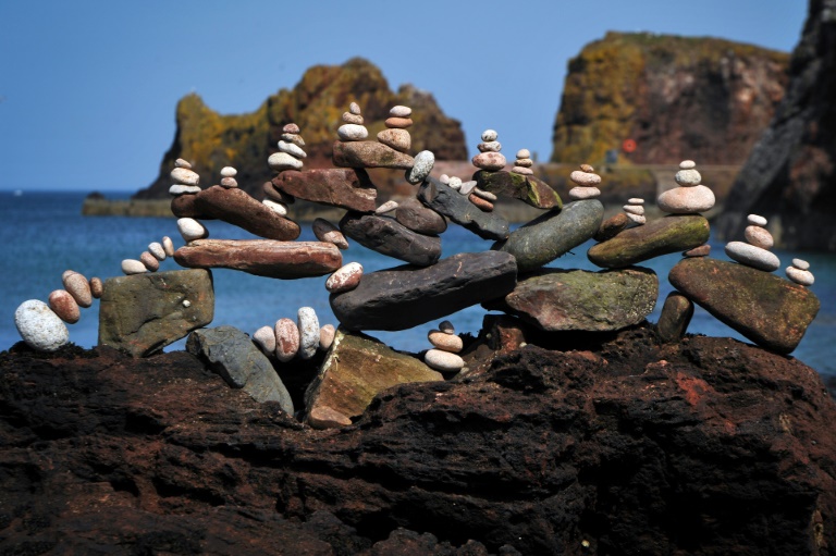 Ils défient la gravité en empilant les pierres pour construire de stupéfiantes sculptures: ce sont les adeptes du "stone stacking", l'art de faire tenir les pierres en équilibre, réunis ce week-end à Dunbar, sur la côte sud-est de l'Ecosse.