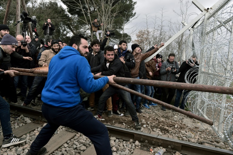 Las, un groupe de 300 Irakiens et Syriens, dont des femmes et enfants, ont forcé lundi un cordon policier grec et enfoncé une partie de la barrière de barbelés. Les policiers macédoniens ont riposté par des gaz lacrymogènes.
