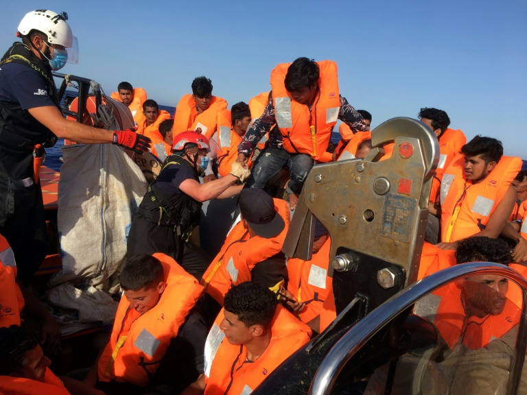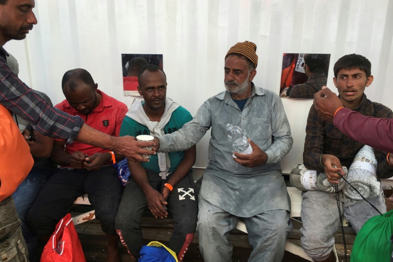 Assis sur une cagette qui fait office de banc à bord du navire humanitaire Ocean Viking, qui l'a recueilli mardi en Méditerranée avec 46 autres migrants à la dérive, le gaillard, doigts enlacés et pouces qui se touchent, sait qu'il vient de faire un pas de plus vers sa femme et sa fille, dont il a retrouvé la trace: elles sont quelque part en Italie, en sécurité.