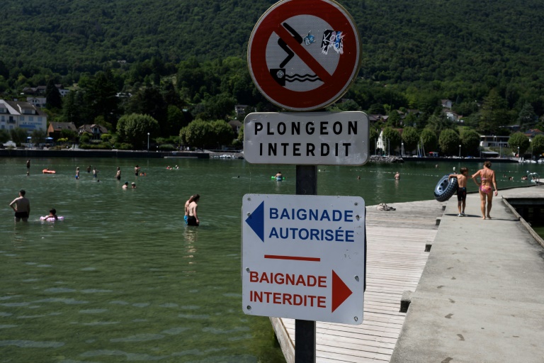 Sur la plage municipale du Bourget-du-Lac, Amara Bayakoyo, 51 ans, se déplace pour avoir une meilleure vue sur ses deux filles de 9 et 7 ans, parties à l'eau. Il montre trois sauveteurs aux aguets. "Ici c'est pas comme sur les autres plages. Ils surveillent, et puis il y a les bouées" qui délimitent les zones de baignade, se félicite cet habitant de Chambéry venu en voisin ce vendredi.