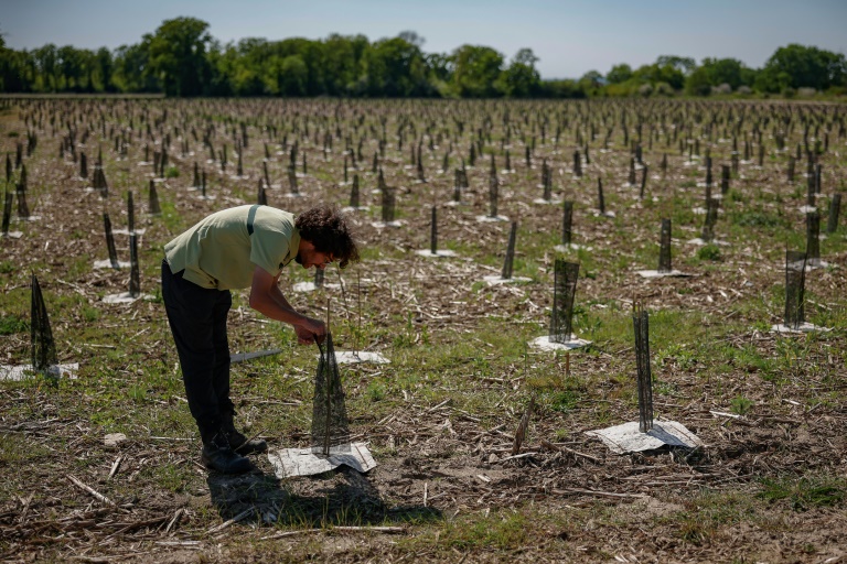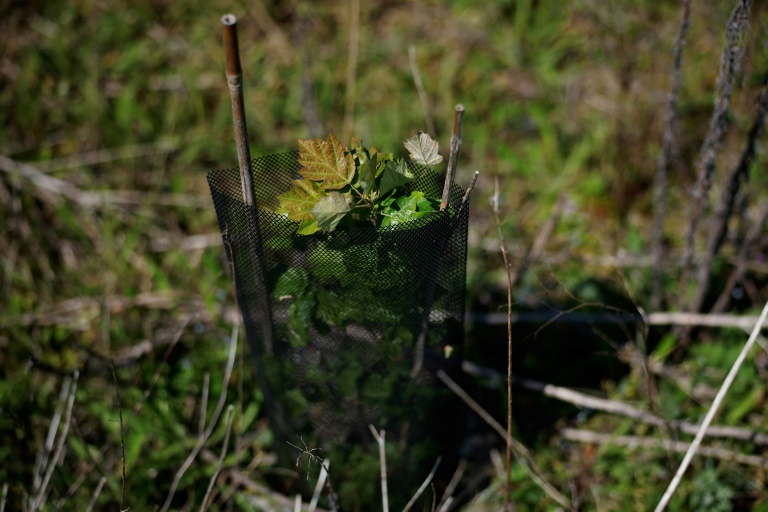 Hiver après hiver, les plantations se sont faites manuellement. En février, cinq hommes plantaient "1.500 arbres en une journée", selon leur chef d'équipe, Iviça Jerinic, 40 ans, posant des gaines autour des pousses alignées "contre les lapins qui, en une nuit, peuvent tout manger".