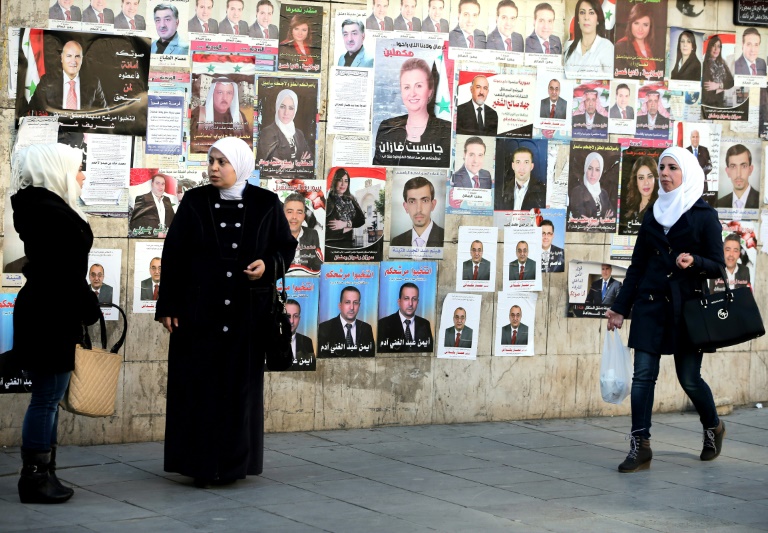 Dans les rues de Damas, le conflit qui ravage le pays est omniprésent dans les slogans de campagne de la dizaine de milliers de Syriens en lice pour les législatives organisées le 13 avril par le pouvoir.