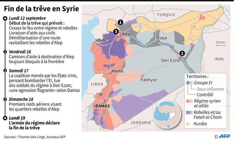 Ce raid est survenu quelques heures après que l'armée du régime de Bachar al-Assad a annoncé "la fin du gel des combats qui a débuté à 19H00 (16H00 GMT) le 12 septembre conformément à l'accord Etats-Unis/Russie".