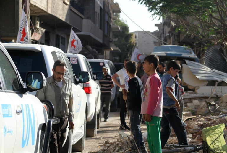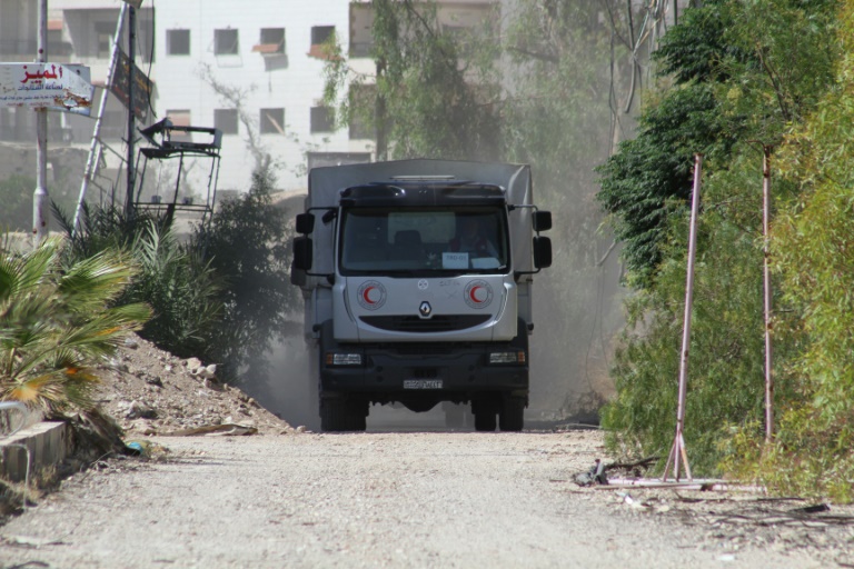 Un convoi d'aide transportant de la nourriture est entré jeudi soir à Daraya pour la première fois depuis le début du siège en 2012 par le régime syrien de cette ville rebelle proche de Damas, a annoncé à l'AFP un responsable du Croissant Rouge.