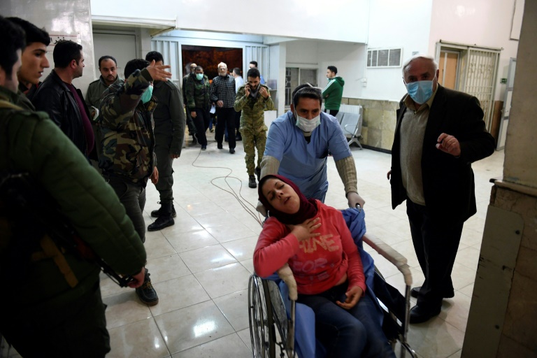 Un photographe de l'AFP a pu voir des dizaines de personnes, dont des femmes et des enfants, affluer vers un hôpital de la ville, certains allongés sur les brancards du Croissant-Rouge, ou alors portés avec difficulté par des proches.