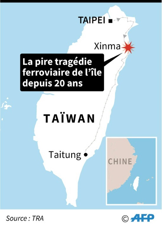 Une centaine de militaires ont été envoyés pour participer aux opérations de secours, selon le ministère de la Défense. Cet accident est la pire catastrophe ferroviaire à Taïwan depuis 1991, quand 30 passagers avaient été tués et 112 blessés dans la collision de deux trains à Miaoli (nord-ouest).