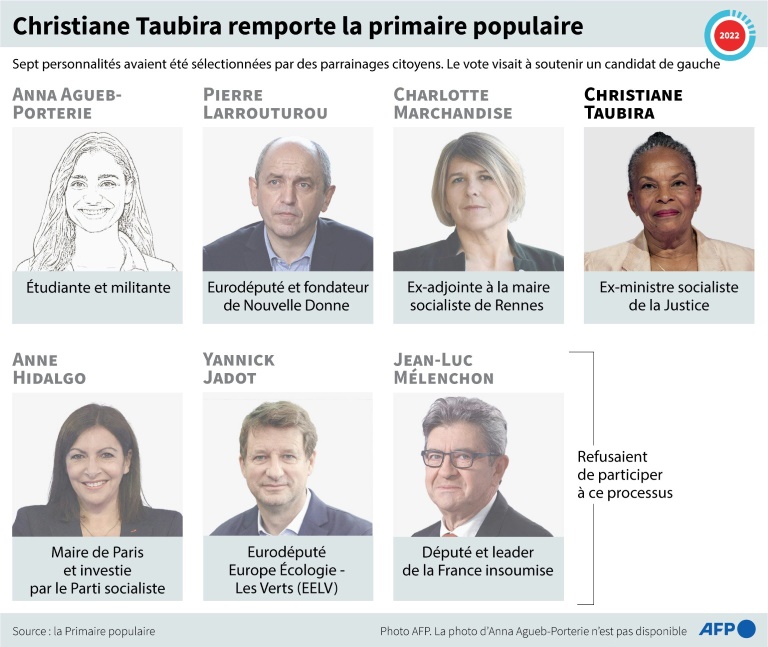 Christiane Taubira est arrivée en tête de la Primaire populaire - où plus de 392.000 personnes ont voté - devant Yannick Jadot et Jean-Luc Mélenchon. Anne Hidalgo est arrivée en 5e position.