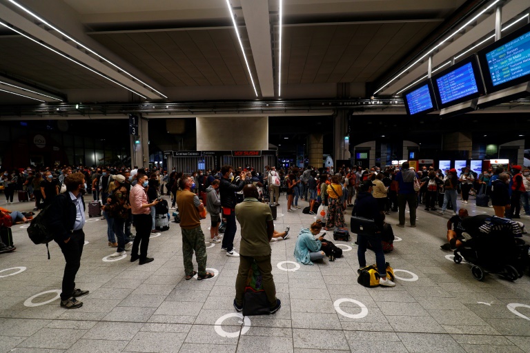 Assis sur leurs sacs, Tania, 39 ans et ses trois enfants, âgés de 6 à 17 ans, attendaient le train pour Poitiers, prévu à 12H24, pour rentrer chez eux à Châtellerault, après des vacances dans la capitale. Ils sont arrivés à 07H00 à la gare. Leur train de la veille a été annulé tardivement, tout comme celui qu'ils devaient prendre à 07H24. "On est fatigués", soufflait Tania.