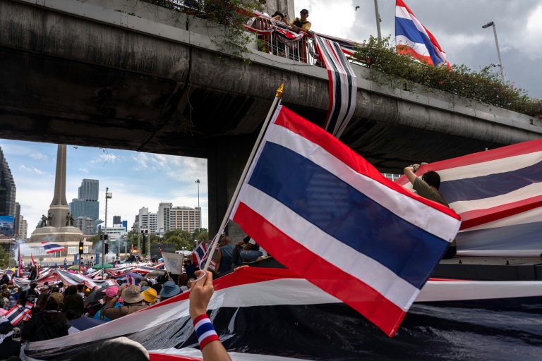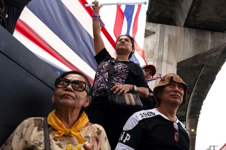"Je suis ici pour protéger la souveraineté de la Thaïlande et pour dire que la Première ministre est inapte", a déclaré Seri Sawangmue, un manifestant de 70 ans qui a voyagé toute la nuit en bus depuis le nord du pays pour assister à l'événement.