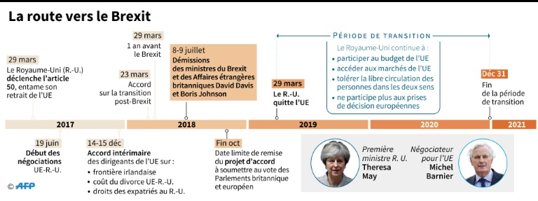 Londres et Bruxelles sont censés parvenir à un accord d'ici à octobre pour organiser le Brexit, prévu le 29 mars 2019, et jeter les bases de leurs relations futures. Mais les Européens s'inquiètent de l'état des discussions et des remises en cause constantes dans son pays de la stratégie de la Première ministre britannique.