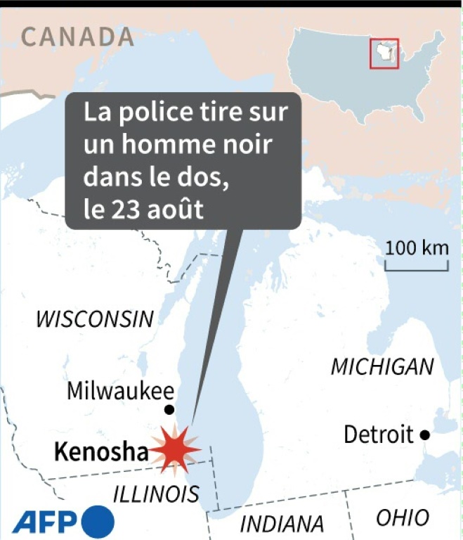 A Kenosha, ville de 170.000 habitants située au bord du lac Michigan, entre Milwaukee et Chicago, des échauffourées ont éclaté dans la nuit de lundi à mardi entre manifestants et forces de l'ordre après l'entrée en vigueur d'un couvre-feu.