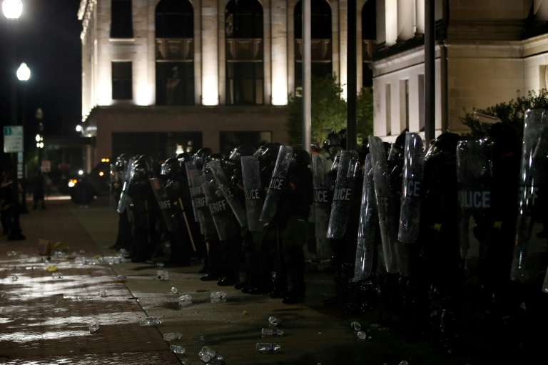 Des affrontements entre un groupe de manifestants lançant des pétards et des policiers ripostant avec des balles en caoutchouc se sont produits mardi soir. Un journaliste de l'AFP a été touché par une de ces balles en caoutchouc. "Certains ne réalisent pas qu'en incendiant un bâtiment, vous mettez en danger la vie des pompiers et de quiconque pourrait se trouver à l'intérieur", justifie Kevin Mathewson, pistolet à la ceinture et fusil d'assaut AR-15 en bandoulière.