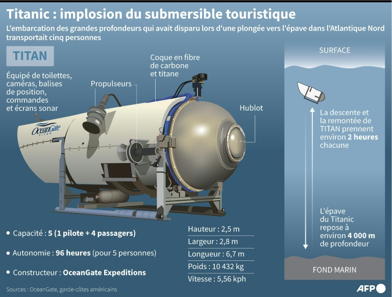 Les familles des cinq membres de l'expédition partis visiter l'épave du Titanic sont en deuil vendredi aprÚs l'annonce de l'implosion de leur petit sous-marin de tourisme scientifique, les critiques se multipliant concernant des négligences potentielles.